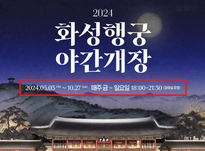 깊은 밤 달빛을 따라 즐기는 궁궐잔치에 여러분을 초대합니다. 화성행궁 야간개장에 참석하셔서 정조의 원대한 꿈과 효심이 느껴지는 화성행궁의 매력에 빠져보시길 바랍니다. 전국에 조성한 행궁 가운데 가장 돋보이는 규모와 격식을 갖추었으며 경복궁만큼 아름다운 궁궐로 손꼽힙니다.